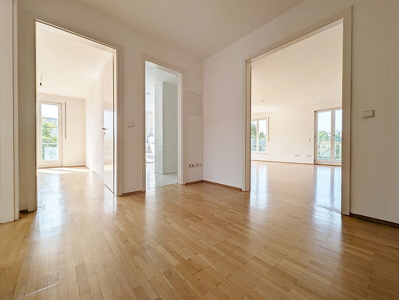 FFM-Sachsenhausen, 3-Zimmer-Wohnung mit ca. 89 m² Wohnfläche, 1. OG mit Lift, bodentiefe Fenster, Parkettboden, Fußbodenheizung, großer Wohn-/Essbereich mit integrierter Einbauküche, modernes Badezimmer, 2 Schlafzimmer, Balkon + ca. 43 m² große Terrasse, TG-Stellplatz zzgl. € 20.000,-, Bezug nach Vereinbarung