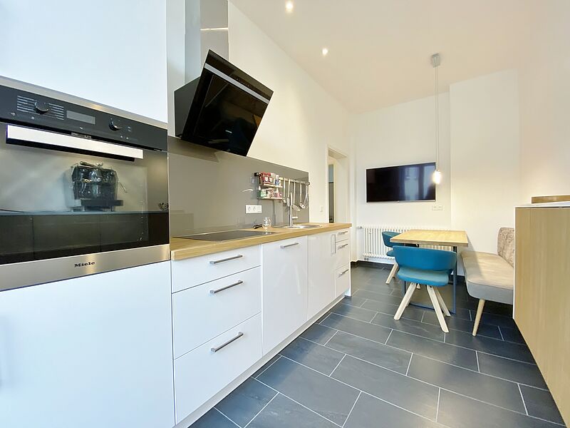 FFM-Nordend, 2-Zimmer-Wohnetage, ca. 69 m², stilvoll renovierter Altbau, 3.OG, hohe Räume, Parkettboden, Wohnküche mit Einbauküche, designtes Tageslichtbad mit Dusche, sep. Gäste-WC, Bezug nach Vereinbarung