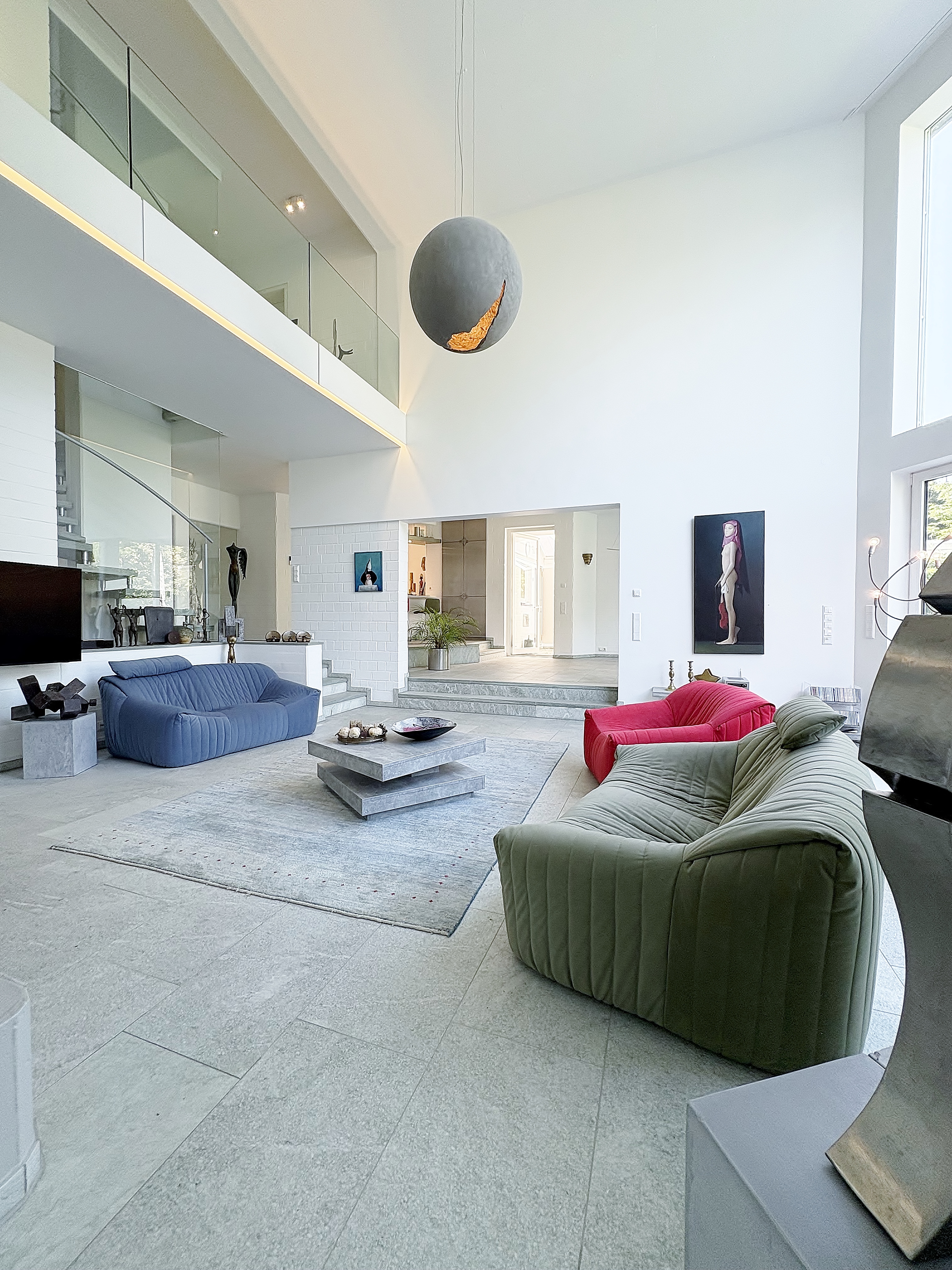 - Spektakuläre Raumwirkung mit Deckenhöhen bis zu 5,60 m und zweigeschossigen Fensterfronten, die Licht und Natur ins Innere holen