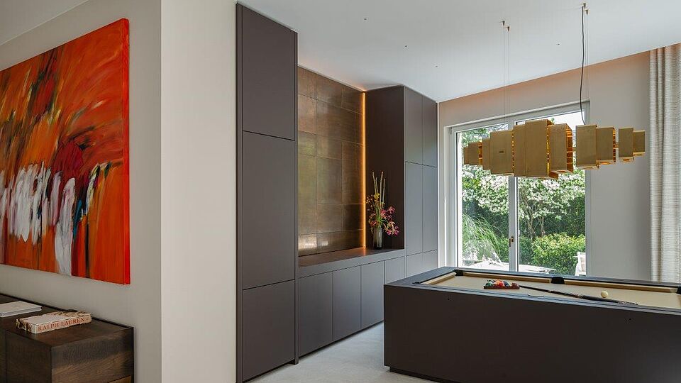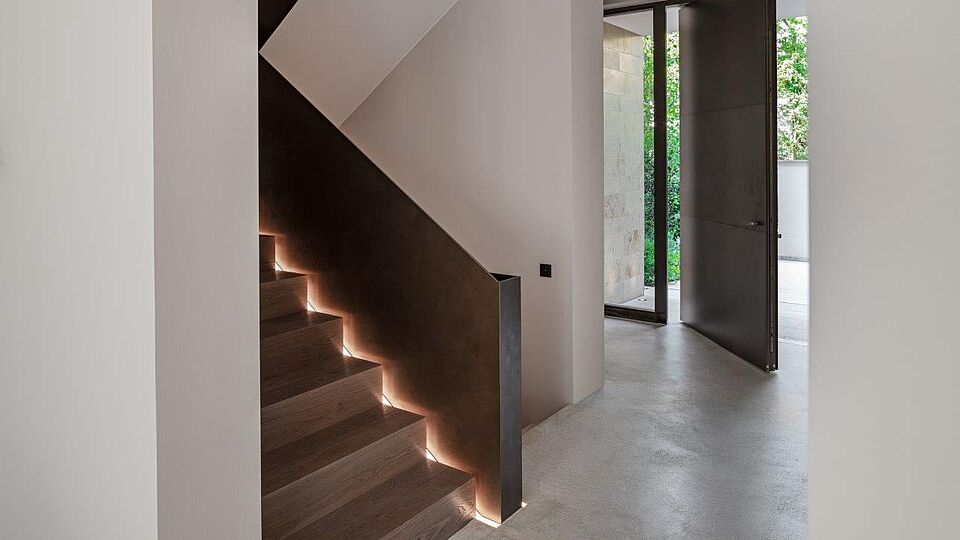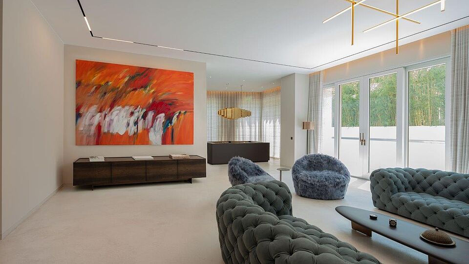 • Modernste Technik: KNX-System, Fußbodenheizung, Alarmanlage, Smart-Home-Steuerung, Sonos-Sound und stimmungsvolle Beleuchtung