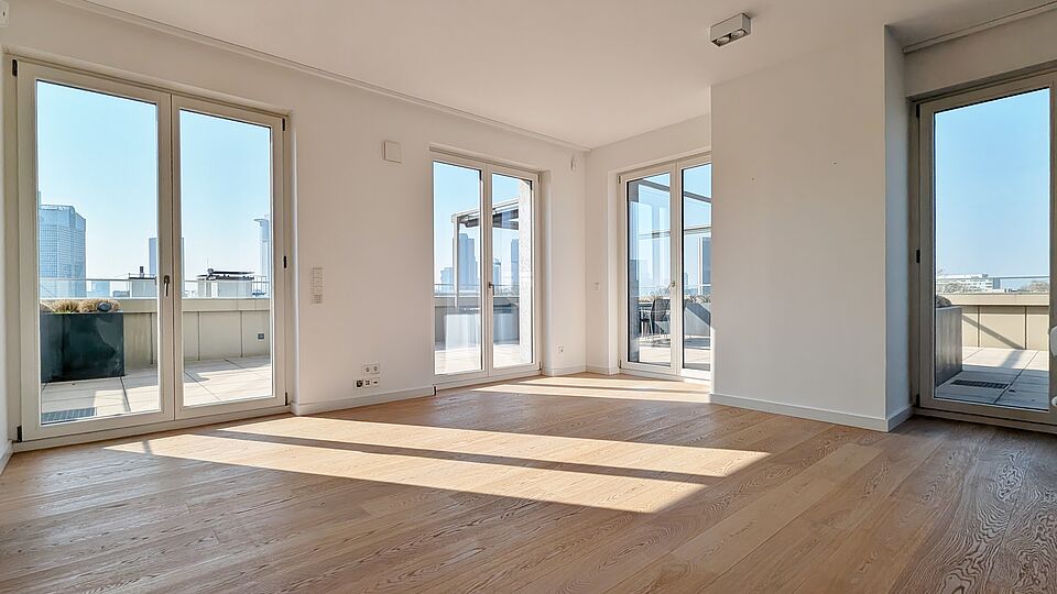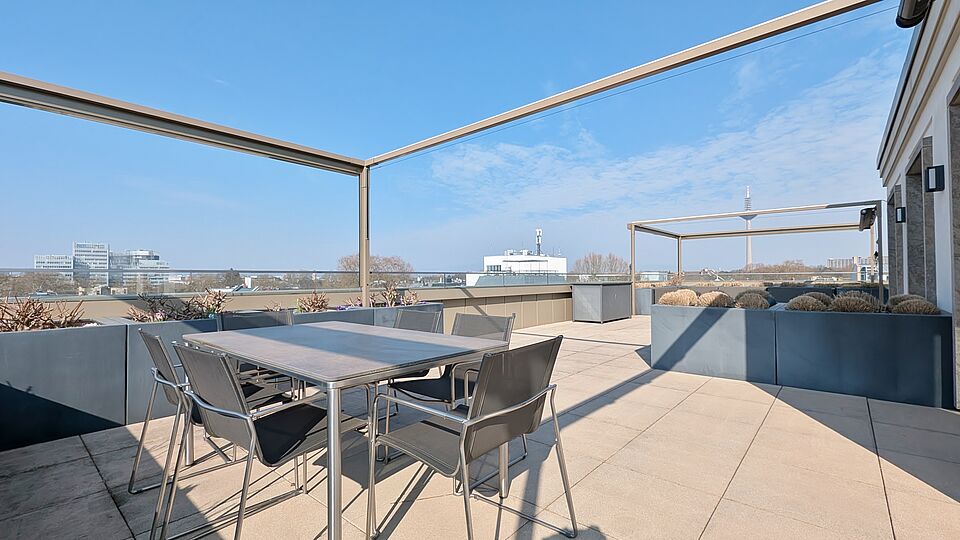 - Ca. 136 m² große, aufwendig gestaltete Dachterrasse mit 360°-Panorama- und Skylineblick