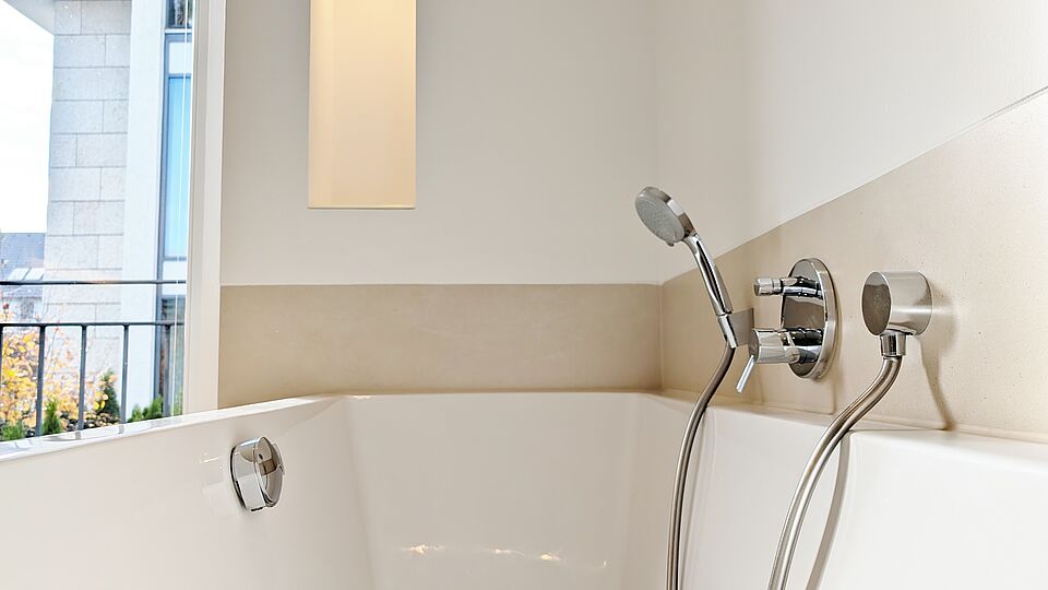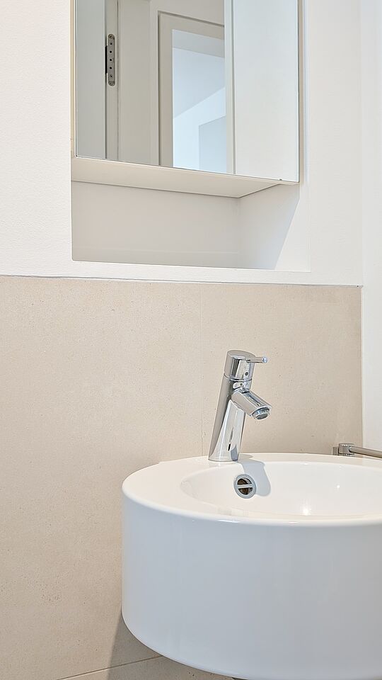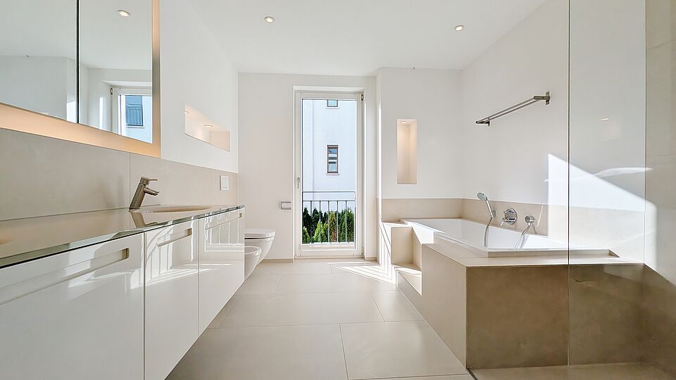 - Zwei stilvolle Tageslichtbäder mit Feinsteinzeug-Oberflächen