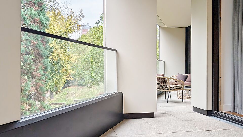 - Zwei Loggien mit Blick in den Park – ruhige Rückzugsorte im Freien mit harmonischem Ausblick ins Grüne