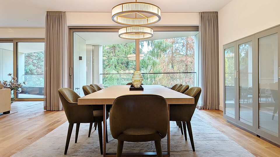- Bodentiefe Fenster mit Dreifachverglasung sowie Sonnen- und Wärmeverglasung – lichtdurchflutete Räume bei optimalem Schall- und Wärmeschutz