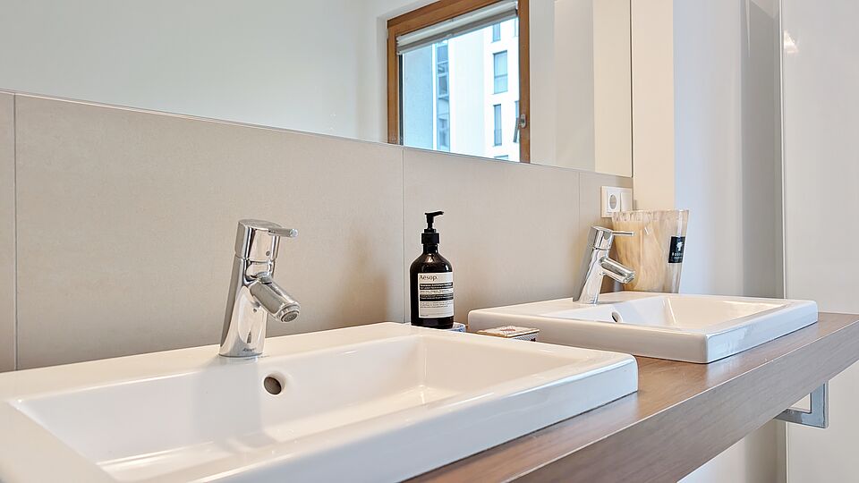 • Zwei moderne Bäder (davon ein Tageslichtbad) sowie separates Gäste-WC
