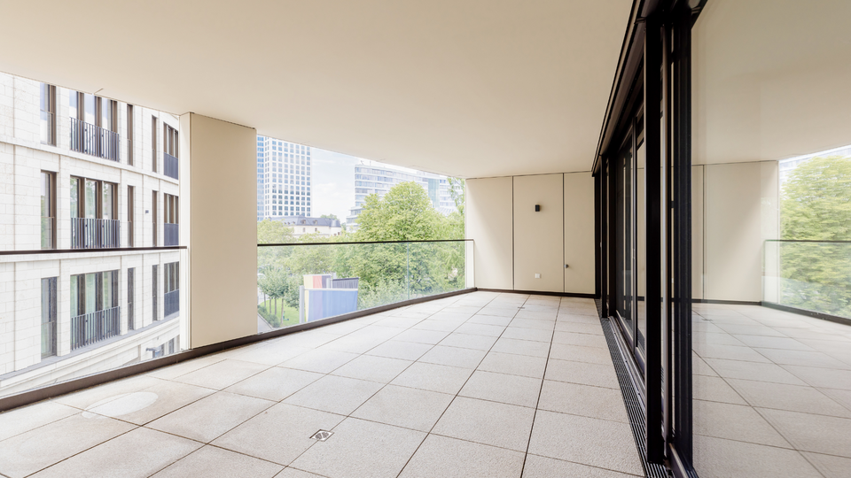 - Bodentiefe Fenster mit Dreifachverglasung sowie Sonnen- und Wärmeverglasung – lichtdurchflutete Räume bei optimalem Schall- und Wärmeschutz